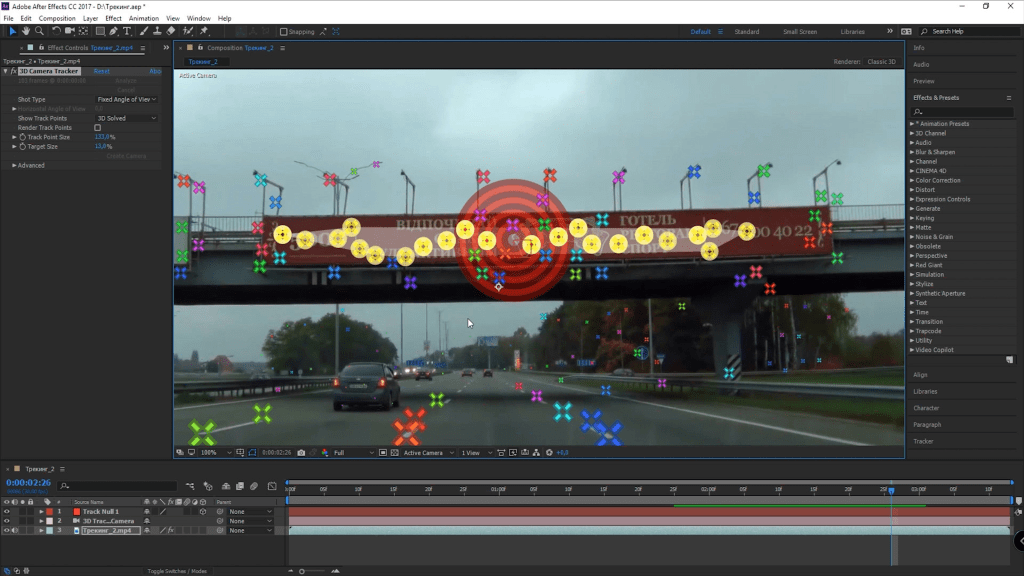 This type of tracking (3D) tracks backgrounds and has depth and 2D automatically tracks up /down and left / right movement.